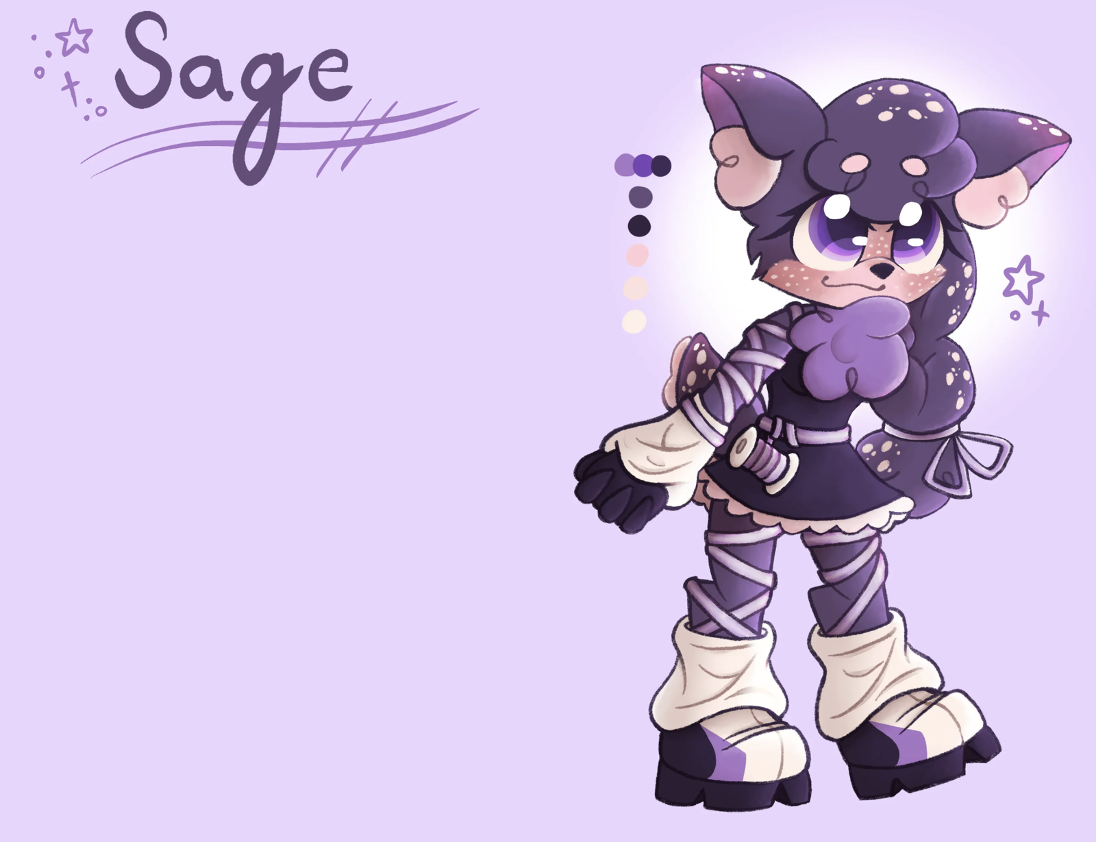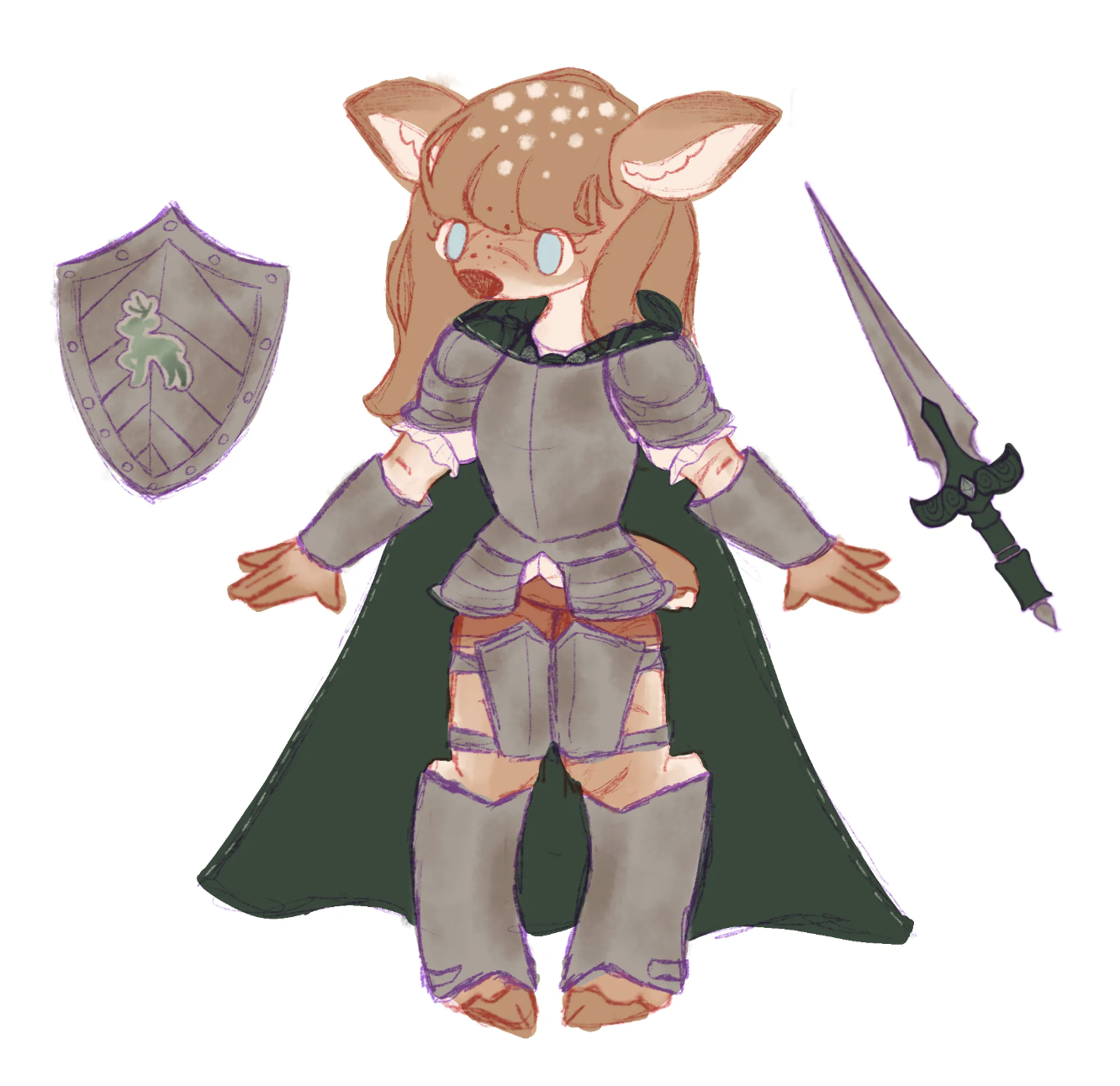a charactr design commision means that I would be working with you to design a character of your description. The completed work would include a reference sheet with the characters front and back, a close of of their face, their color palette and could even include 1-3 props!